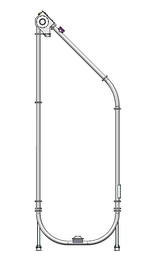 - Vận chuyển đa hướng linh hoạt: Hệ thống có thể vận chuyển vật liệu theo bất kỳ hướng nào: ngang, nghiêng, thẳng đứng hoặc kết hợp các góc cua phức tạp, giúp tiết kiệm không gian và dễ dàng lắp đặt trong các nhà máy có bố cục chật hẹp.